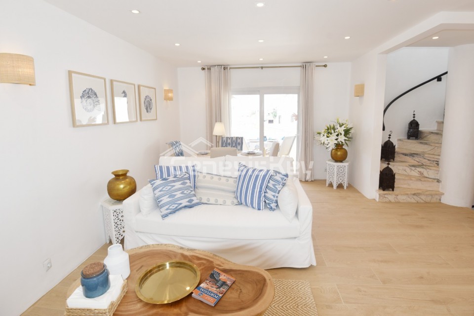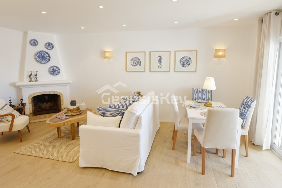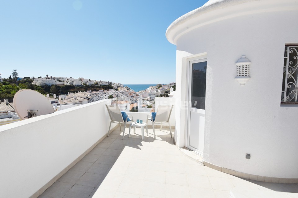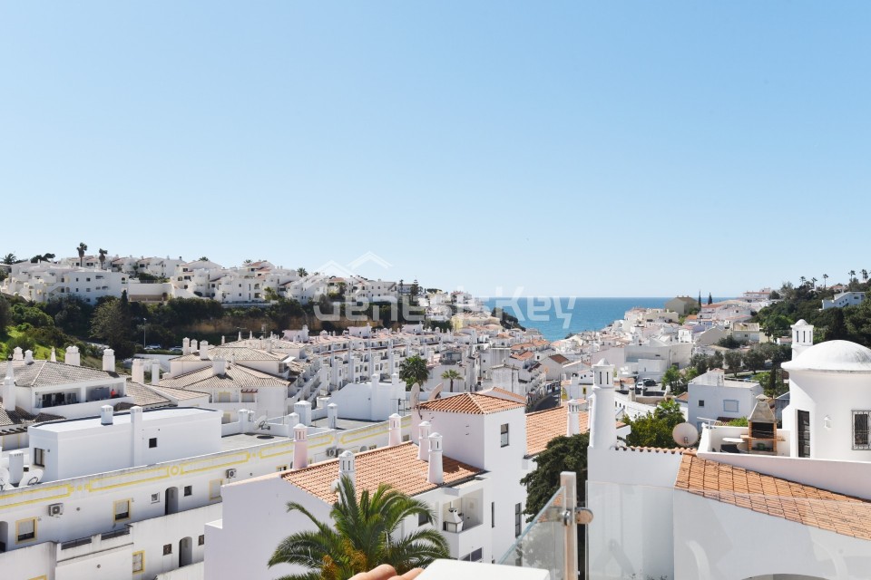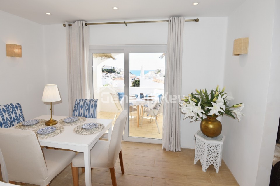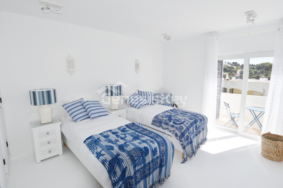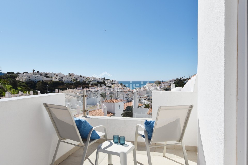 An unique property for sale in the prestigious Colina Branca area in Carvoeiro. This exquisite semi-detached townhouse has been beautifully restored to an exceptional standard, combining elegant contemporary design with refined craftsmanship throughout. Offering breathtaking sea views from the private roof terrace and the property features a spacious and light-filled sitting room with views to the sea. Both double bedrooms benefit from their own balconies, creating a seamless connection to the outdoors. Every element of this home reflects meticulous attention to detail, with high-quality fixtures and fittings carefully selected to enhance both style and comfort, resulting in a truly sophisticated coastal retreat just minutes from Carvoeiro's much loved village.