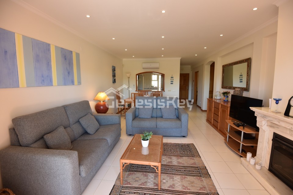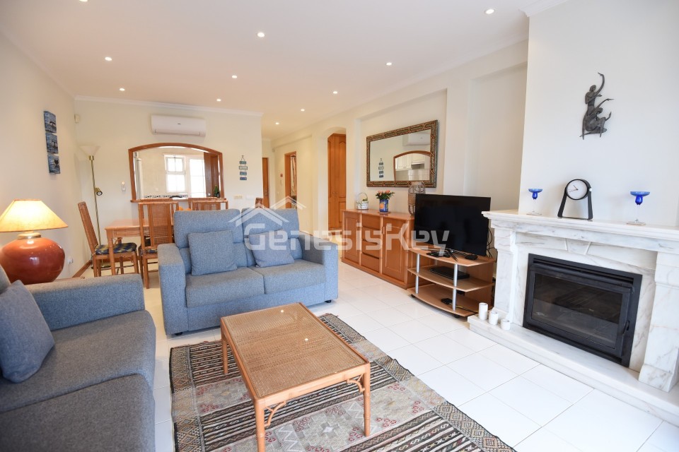 The property features a bright and elegant open-plan lounge and dining area with a charming wood-burning fireplace and double-glazed patio doors opening onto a rear terrace, perfectly positioned to enjoy the spectacular surroundings.