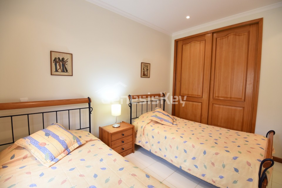 The home offers two comfortable bedrooms with fitted wardrobes, one of which benefits from double-glazed patio doors opening directly onto the terrace, creating a pleasant connection between indoor and outdoor living.