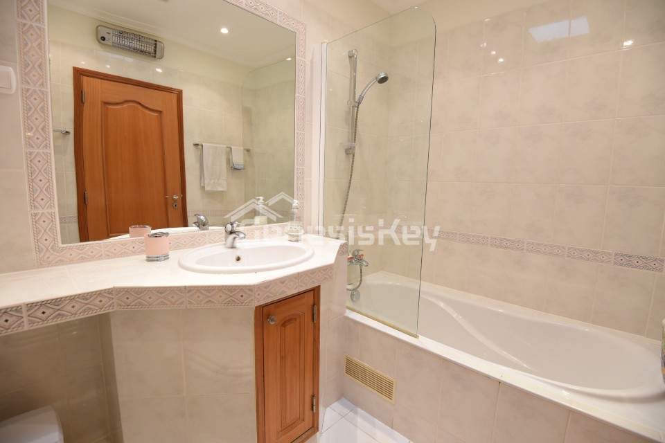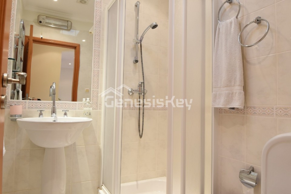 There are two well-appointed bathrooms, one featuring a bath and the other a shower.