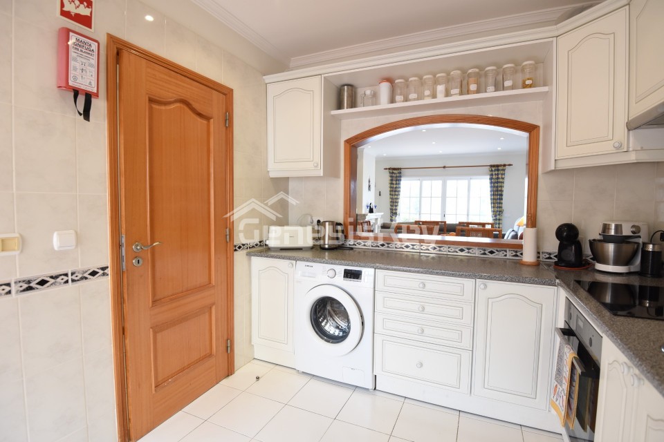 A fully fitted kitchen provides direct access to a practical drying area, while external stairs lead to a delightful roof terrace, an ideal space for relaxing or entertaining while taking in stunning panoramic views of the Atlantic Ocean.